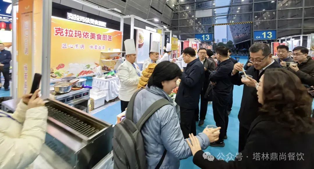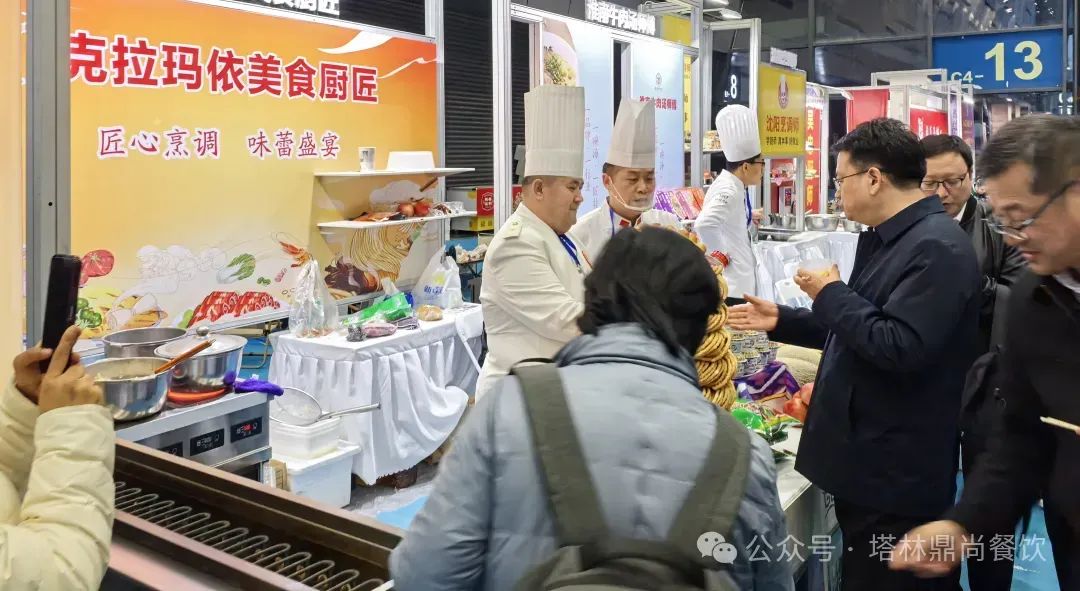 人社部领导及新疆人社厅党组书记陈志江一行也亲临现场,对克拉玛依美食厨匠(厨匠老白)制作的美食高度赞赏,并在今后的美食品牌研发和推广方面给予了鼓励和支持。现场人头攒动,热闹非凡,大家沉浸在新疆美食所营造的欢乐氛围中。