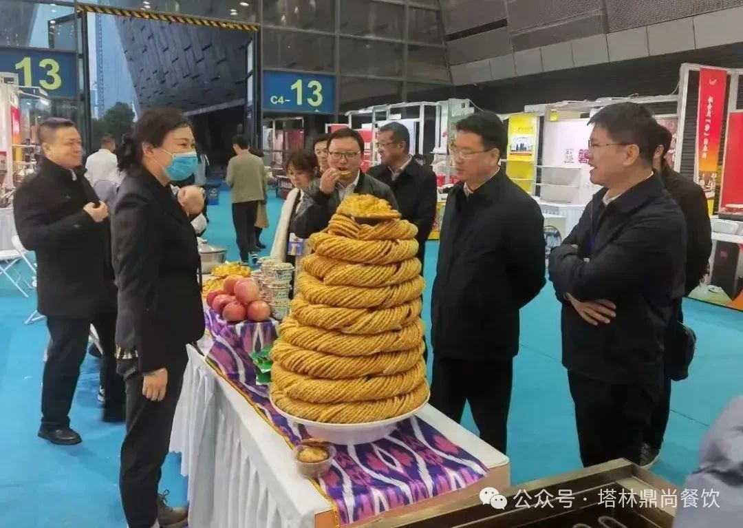 展会现场,美食厨匠(厨匠老白)劳务品牌的成果展示区域格外引人注目。精心制作的馓塔、馕塔宛如精美的艺术品,散发着诱人的香气,在品类繁多的新疆本地特色水果的点缀下,琳琅满目,令人垂涎欲滴。这些美食不仅在外形上巧夺天工,更是在味道上做到了极致,充分展现了新疆美食独特的魅力和精湛的烹饪技艺。