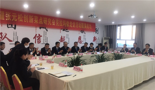 本次会议恰逢张元松菜点研究会阿勒泰与克拉玛依走访座谈活动一行,为了欢迎国家元老级烹饪大师张元松至集团公司莅临指导,白玉清总经理组织集团公司参加会议人员与张元松菜点研究会走访座谈的60多位会员们一同聚餐,聚餐中还特意邀请了新疆塔林投资集团各位领导,九游平台董事长蔡总也对集团公司各项工作给予了认可,希望大家再接再厉,共创辉煌。