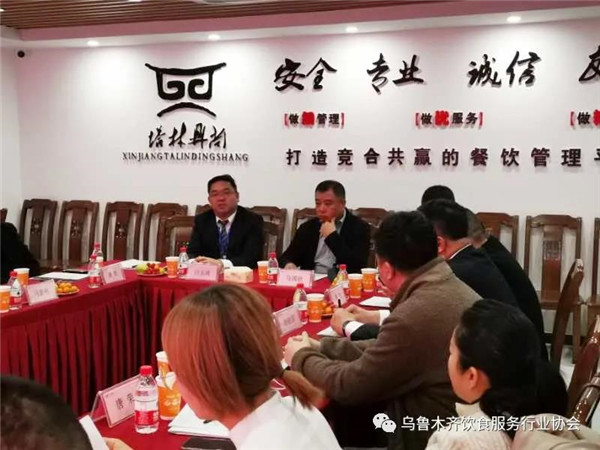 3月26日,乌鲁木齐饮食服务行业协会一行走访了新疆塔林鼎尚餐饮管理有限公司,会长马国钦,常务副会长兼秘书长白京堂,副秘书长刘银宝,名厨委主任陈成江,执行会长康凯、马新艳,常务副会长高先、张钢,副会长沈方、王胜及广东超霸世家食品有限公司新疆区负责人王建超等参加了走访。