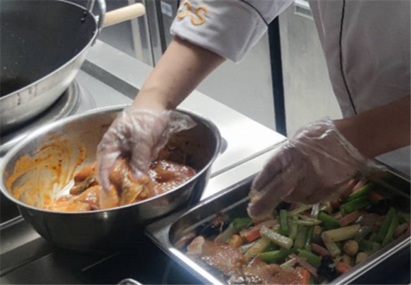 实操环节,姚老师结合理论内容,进行现场实际规范演示及烹饪步骤分解,将制作方法及小窍门一一展示,从切菜、配菜、烹饪,每一道工序都极为认真。学员们用笔和镜头全程记录下宝贵的学习过程。