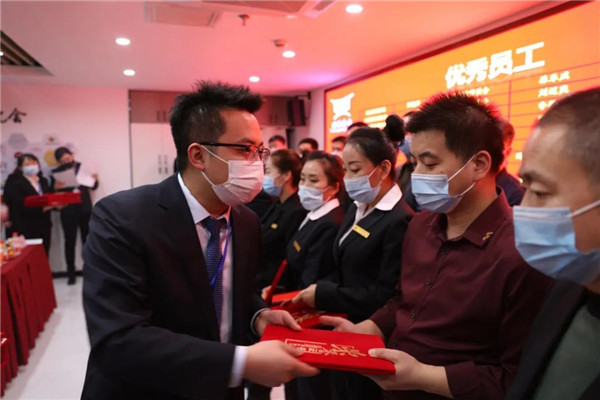 为激励先进、鼓舞全员,激发全体九游平台团结奋进,扎实工作,2月7日,新疆塔林鼎尚餐饮(管理)集团有限公司2020年度评优选先表彰大会在公司商学院隆重召开。集团公司总经理白玉清及相关领导出席了表彰大会。