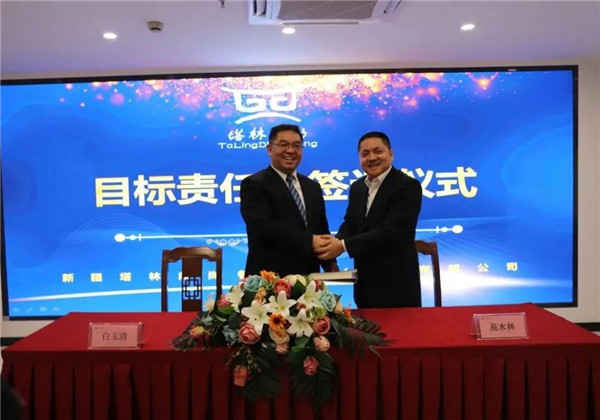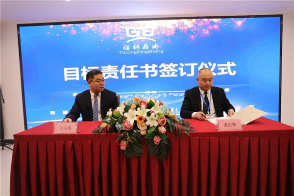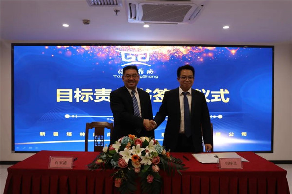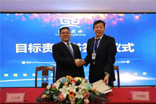 年度目标签约仪式上,集团公司总经理白玉清分别与库尔勒分公司、乌鲁木齐分公司、独山子分公司、花园酒店分公司、钻井劳务公司、钻井生活服务等公司签订了目标责任书。