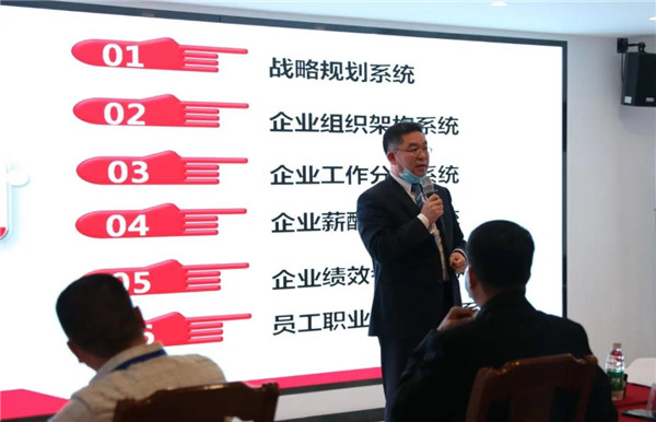 02 绩效落地培训课程中,白玉清总经理、赵建国副总经理围绕公司五年及年度战略规划、确认管理层各岗位指标及目标责任、公司岗位职涯路径等内容与参会人员进行了集体讨论,人力资源部部长陆美霞就围绕主旨话题全程讲解。每一环节集体讨论后,再由各部门及分公司进行分组讨论、学习和分享。最终形成公司五年及年度战略规划定位方案。