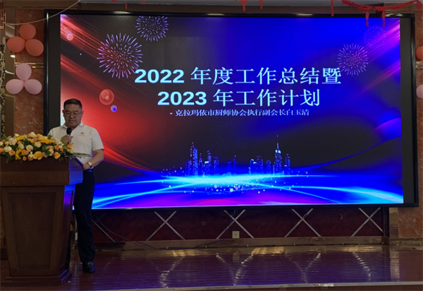 市人社局吝继文表示,疫情过后,经济复苏,克市厨师协会业界专家、大师齐聚于会堂,各抒己见,共同讨论烹饪新技法、餐饮新形势。并对以后厨师协会的工作指明了方向,从而指导、践行油城餐饮恢复、振兴、拉动餐饮消费,鼓励会员积极参加培训学习、参加厨艺赛事,增添油城烹饪新秀,实现本土餐饮行业高质量发展。