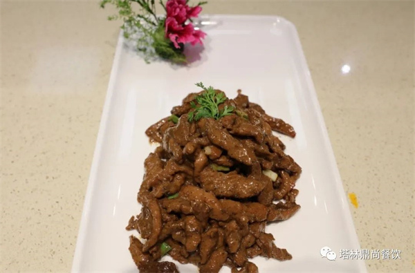 制作过程:雪花牛肉煎好切成粒,蒜子姜粒干葱头炸好,黑胡椒汁加料炒制而成。