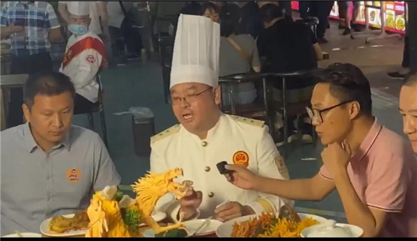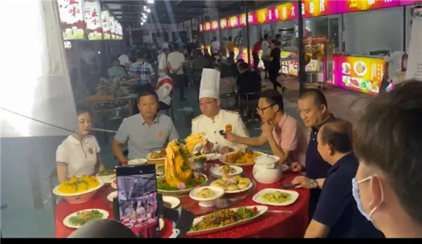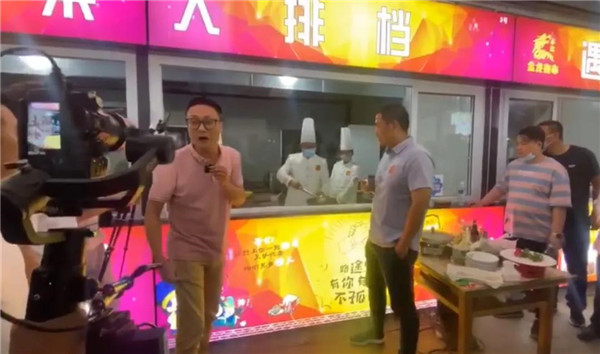 (白总在现场通过直播为广大网友推介白碱滩区夜市美食)